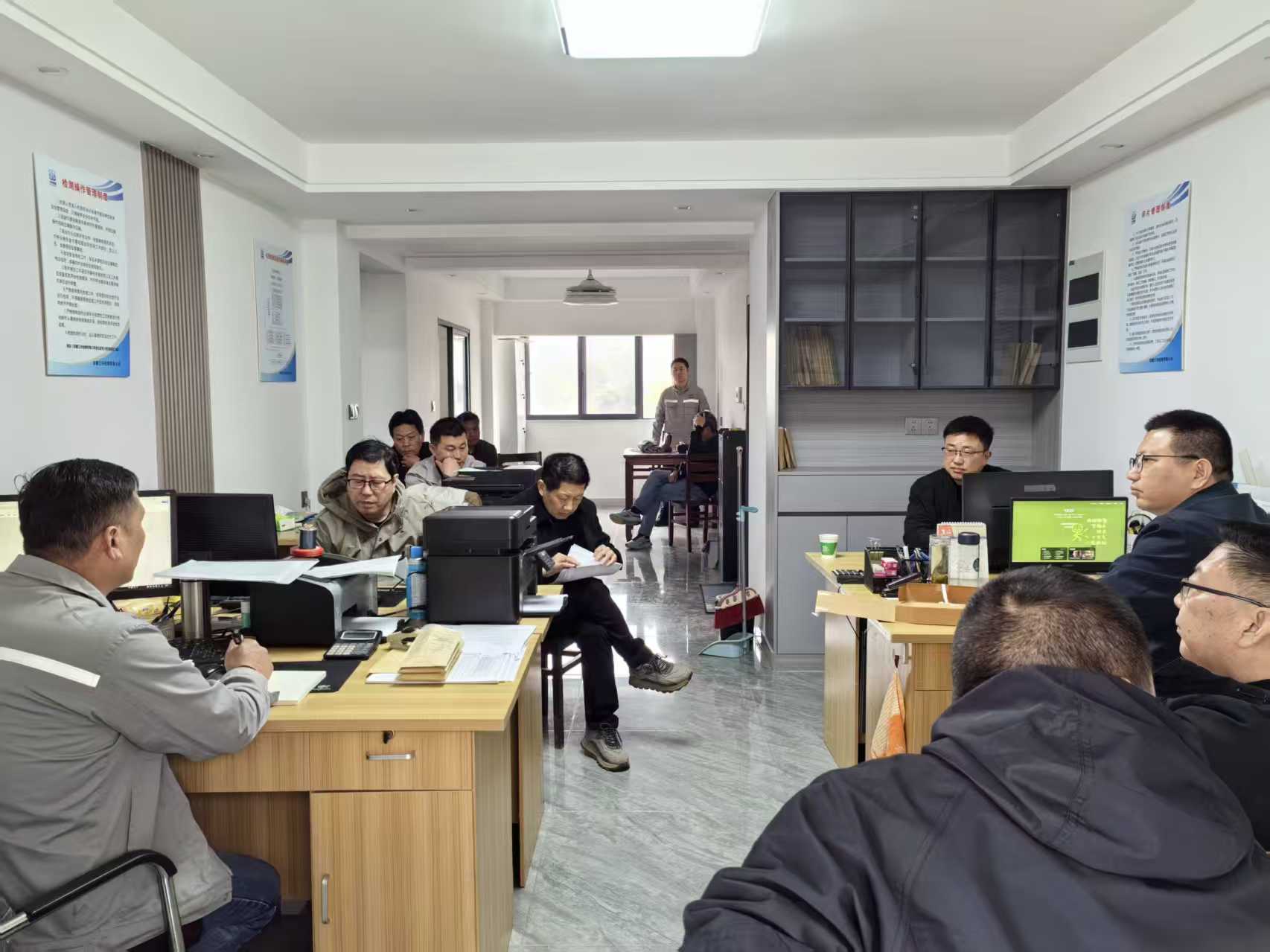 春启新程,聚力前行。为进一步优化办公与作业环境,夯实项目发展基础,经过充分调研、周密部署与精心筹备,近日,三兴检测安庆项目部顺利完成整体搬迁工作,以全新面貌开启发展新征程。 搬迁完成后,三兴检测执行董事韩承康、副经理黄求军亲临安庆项目部视察指导,深入现场详细了解项目部近期运营状况、重点项目推进进度及市场开发布局等情况。 项目部负责人就近期工作开展情况、存在的问题及下一步工作计划进行了全面汇报。随后,黄经理结合项目部实际,从市场开拓提质、项目安全防控、质量管控从严等关键方面提出明确要求,强调要筑牢安全防线、严把质量关口,全力拓宽市场布局。 最后,韩经理作总结讲话并提出具体指导意见。他认真听取了一线工作人员的意见建议,悉心询问大家在现场工作中遇到的困难与瓶颈,现场与参会人员深入交流、协同探讨,逐一梳理解决方案。同时,韩经理勉励安庆项目部全体人员,要以此次搬迁为新起点,迅速适应新环境、展现新风貌、激发新活力,凝心聚力、真抓实干,在新的征程上攻坚克难、奋勇争先,力争各项工作实现新突破、取得新成效,为公司高质量发展贡献更大力量。